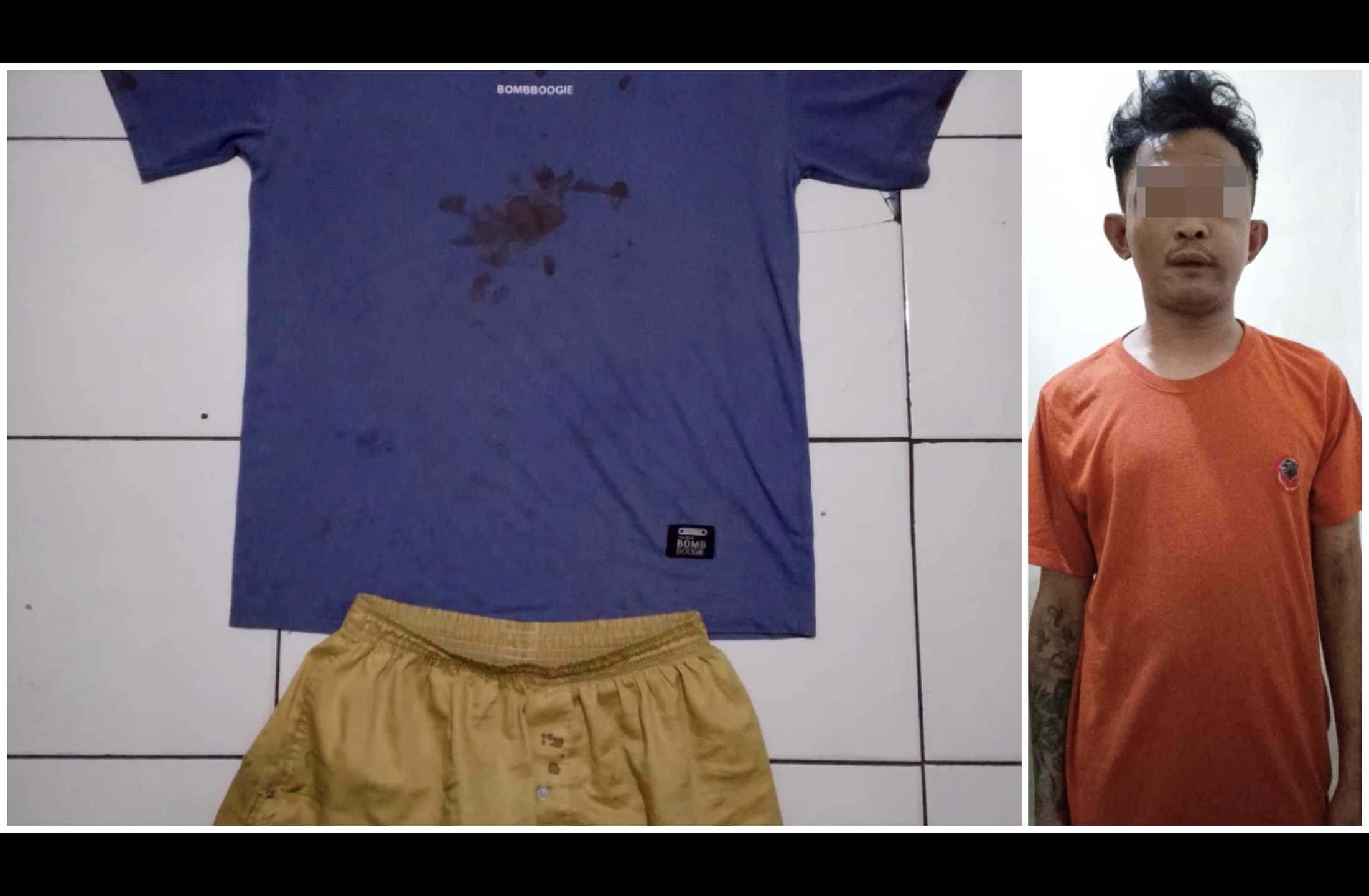 Barang bukti yang disita berupa pakaian pelaku saat beraksi, yaitu satu buah baju warna biru bertuliskan Bombboogie dan celana pendek warna kuning.