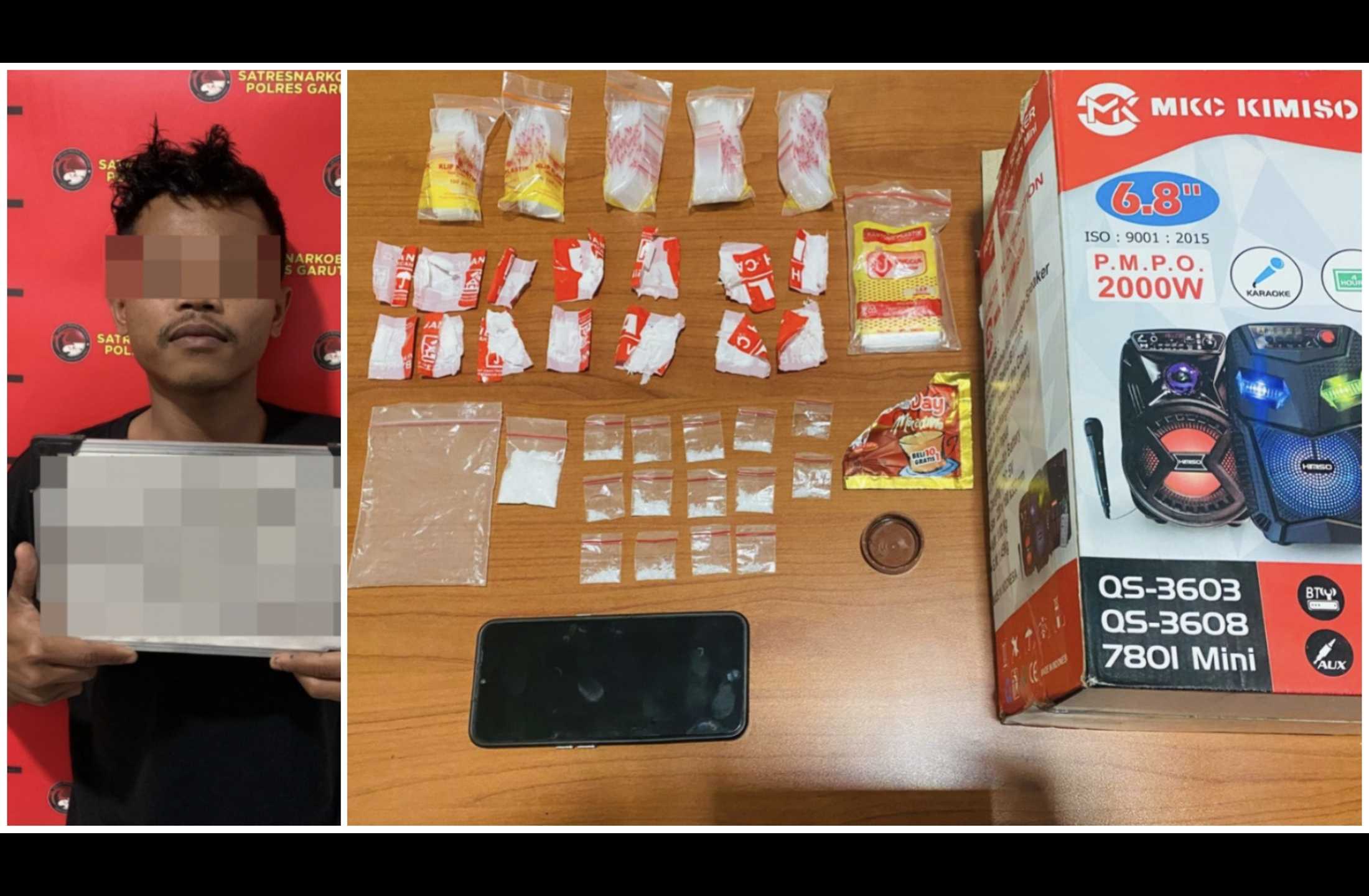 Pelaku berinisial WA (26), warga Kecamatan Cilawu, ditangkap bersama sejumlah barang bukti berupa sabu dengan berat netto 6,37 gram, alat hisap (bong), plastik klip bening, korek gas, serta satu unit telepon genggam yang digunakan untuk bertransaksi.