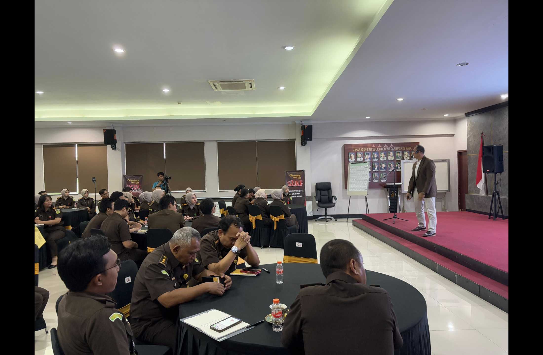 Kegiatan ini menghadirkan Master Trainer Bang Bob melalui kerja sama Kejari Garut dengan TobeIndonesia. Materi yang diberikan menitikberatkan pada pembangunan pola pikir positif, penguatan kerja tim, dan penanaman nilai kepemimpinan aplikatif di lingkungan kerja.
